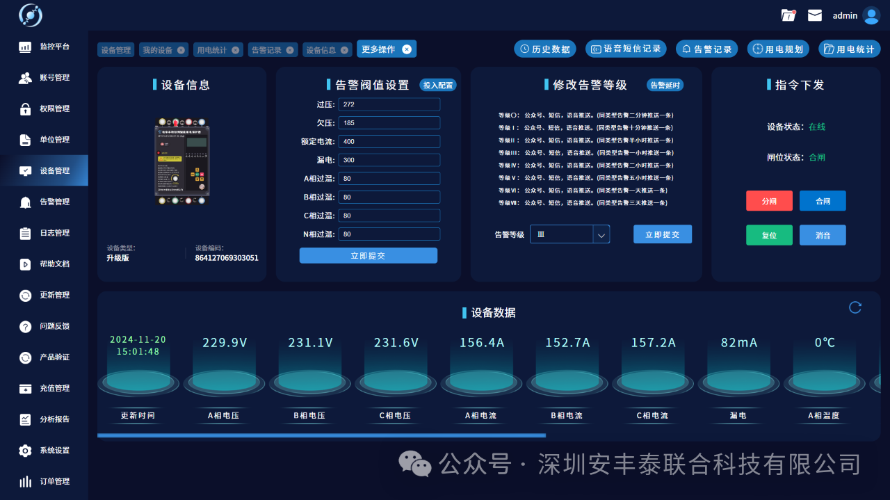 针对工程项目施工现场复杂多变的用电环境,我司的电牵手智能用电保护器可以做到实时监控、浸水防触电和精确预警功能,通过物联网、大数据、云计算,全天候监测线路中的漏电、电流、电压、温度、过载、接触不良、线路老化、电弧突变等隐患,数据实时传送至云平台,实现隐患大数据从工地现场到云端及从云端到用户终端的高效传输。当用电安全隐患达到预警值,秒级报警并精准报出故障点,系统自动通过电脑、手机终端通知相关负责人员,全面提升工地的电气安全水平。